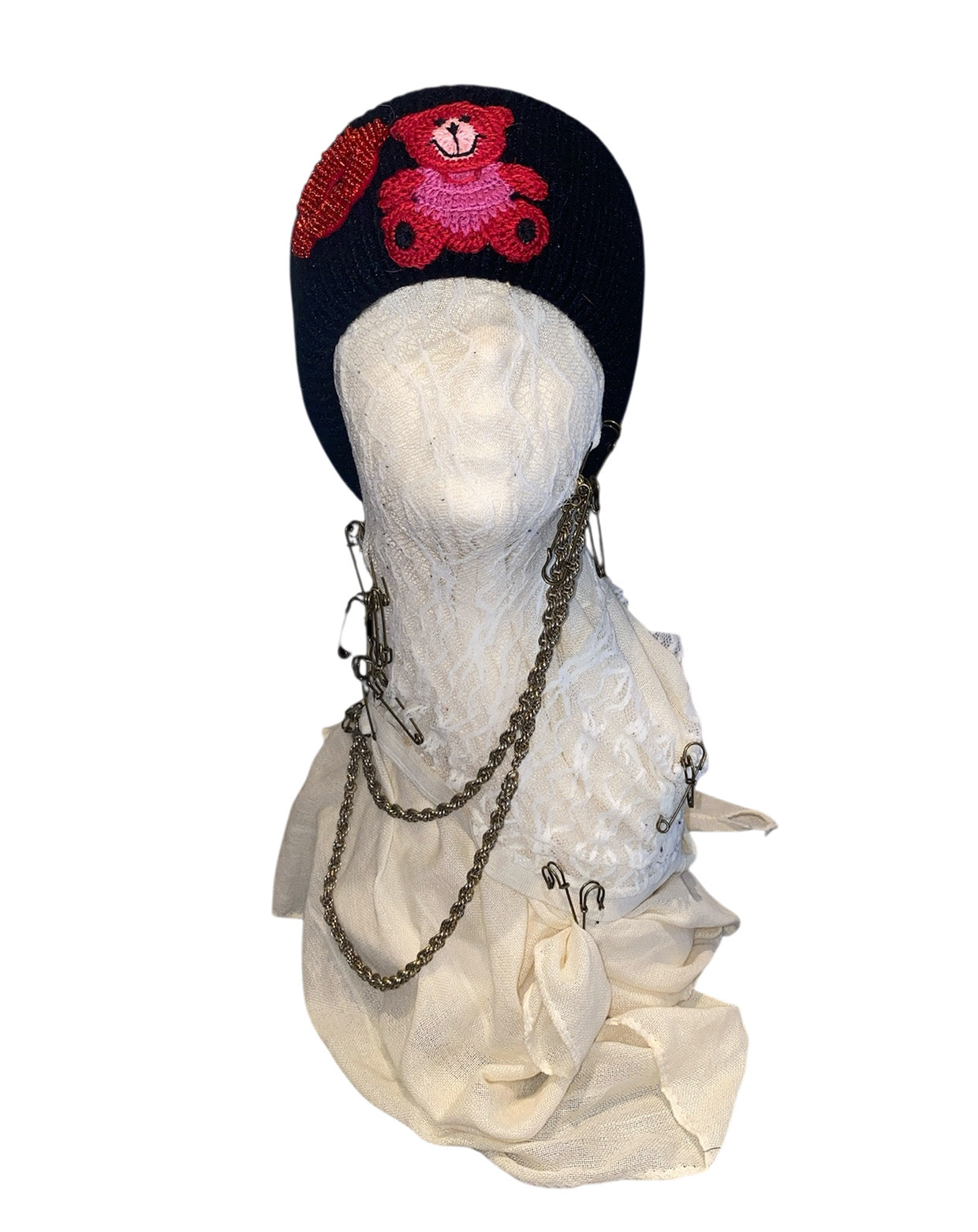 • 画像をギャラリービューアに読み込む, Bear Knit Hat-Black