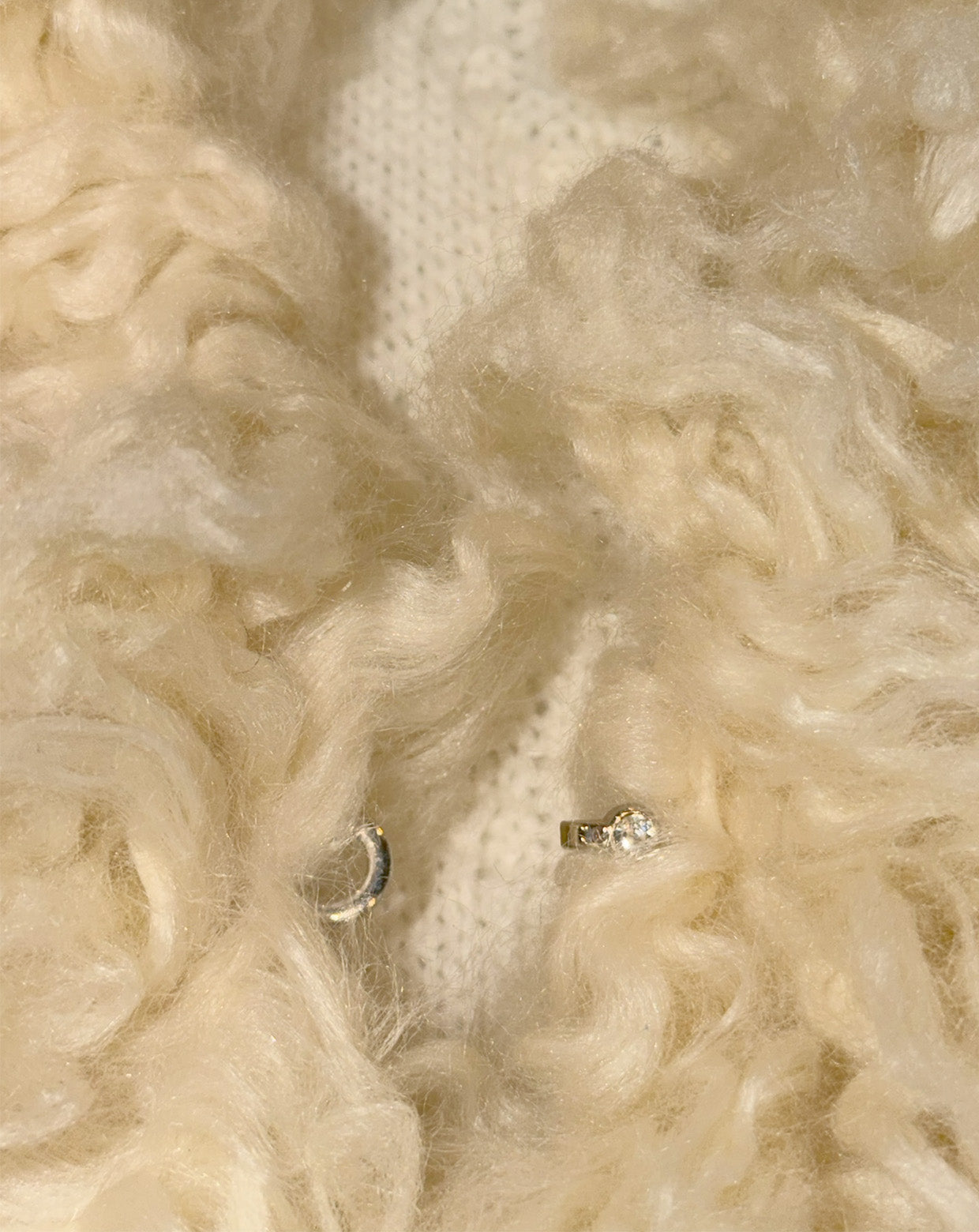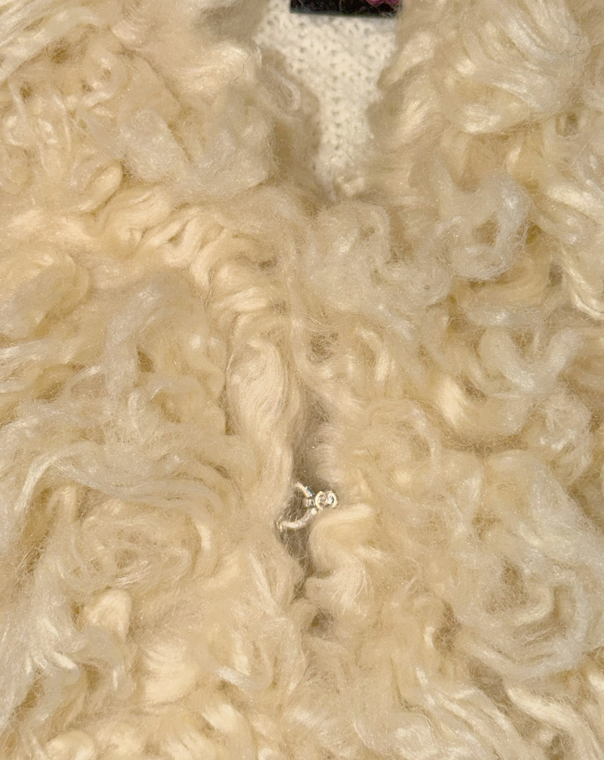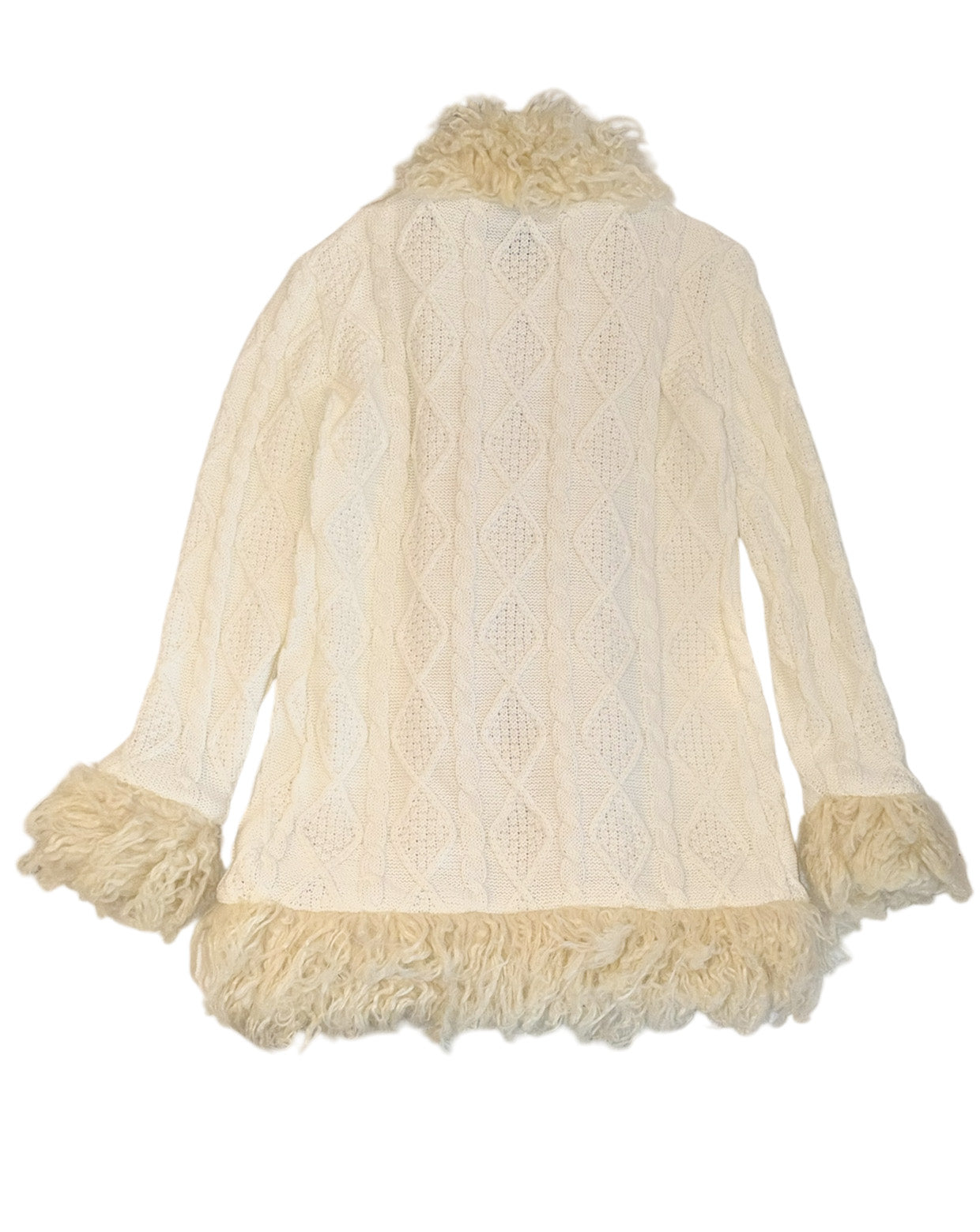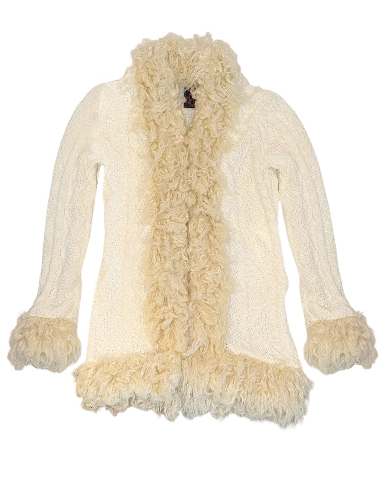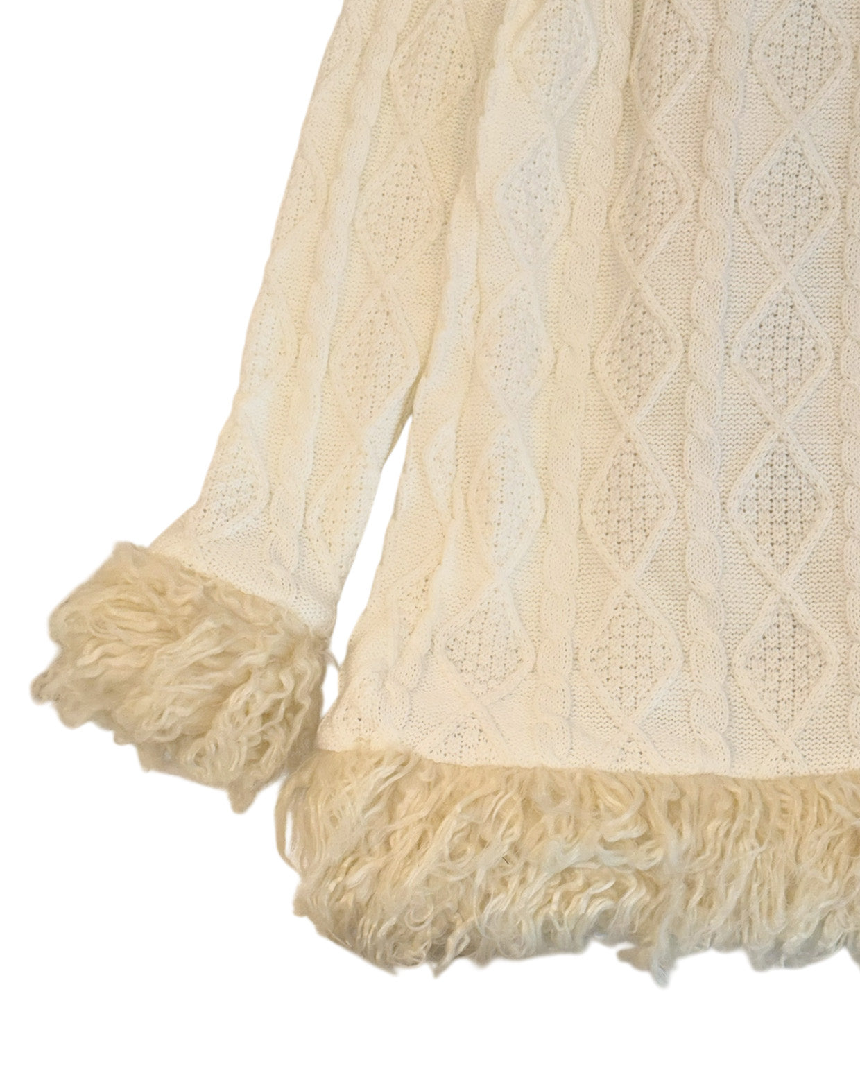 ・Long knit cardigan with voluminous, fluffy poodle fur
