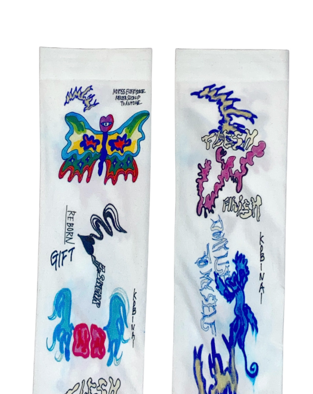 人間の心の奥底にあった大切なことの中にいない未公開”キャラクターやメッセージ、ISWEAR BUTTERFLYモチーフとしたソックス。