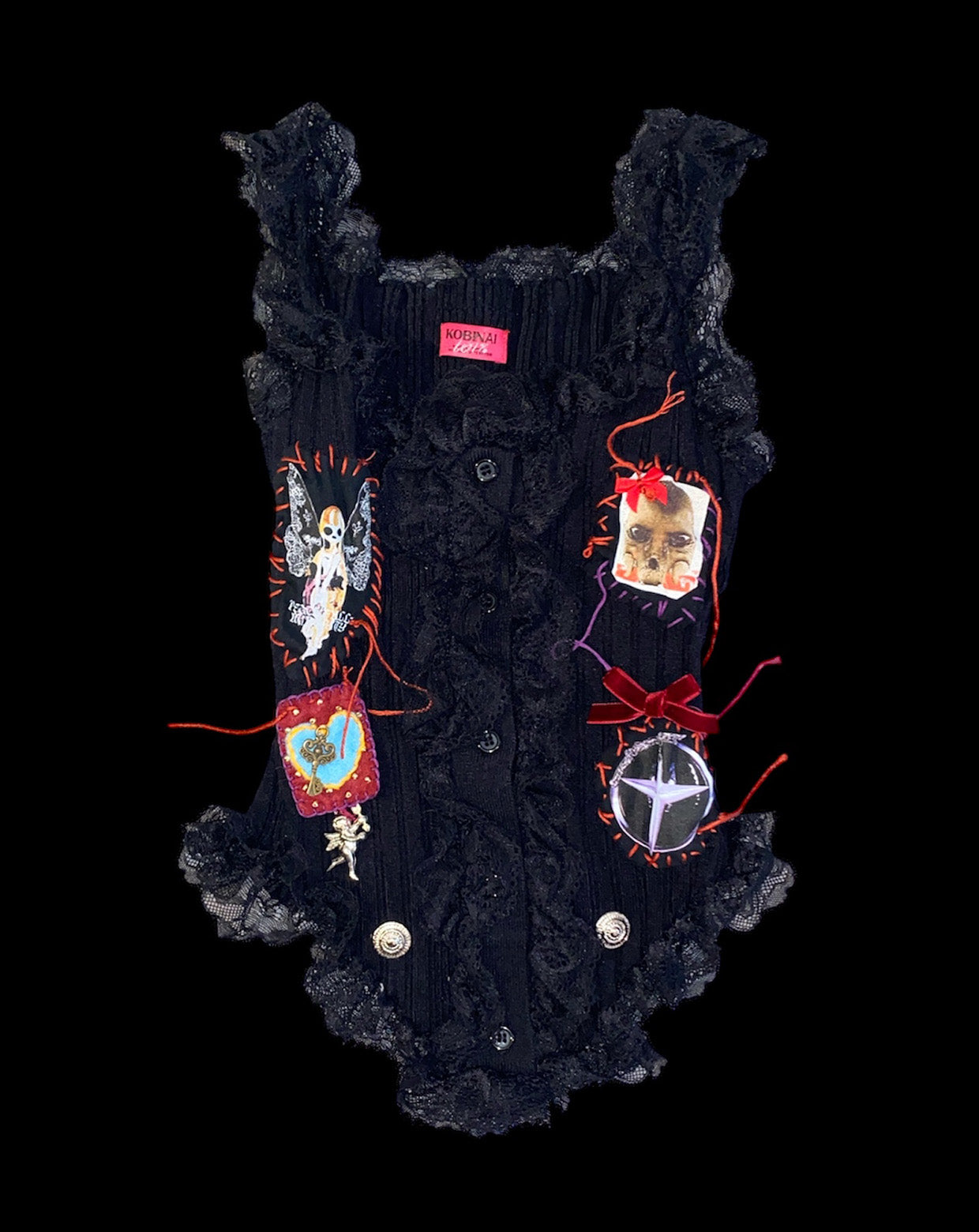 SIZEバスト56cm,着丈(長い丈)40cm, (短い丈)30cm伸縮性有り