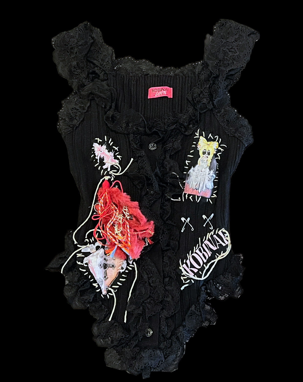 SIZEバスト52cm,着丈(長い丈)43cm, (短い丈)30cm伸縮性有り