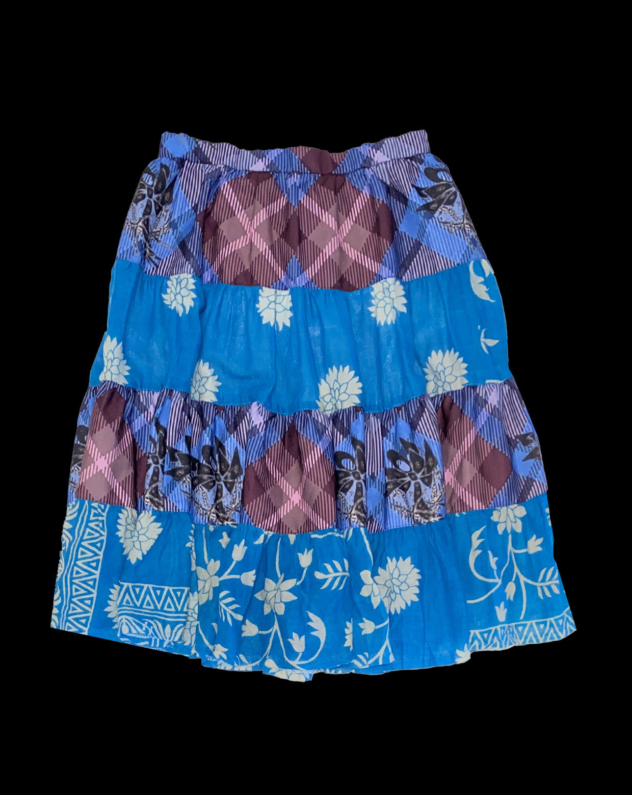 This feeling led to the challenge of creating clothes using old saris purchased through fair trade. Designer MAIMI created patterns inspired by the streets of India, printed them on fabric, and created items combining old saris.