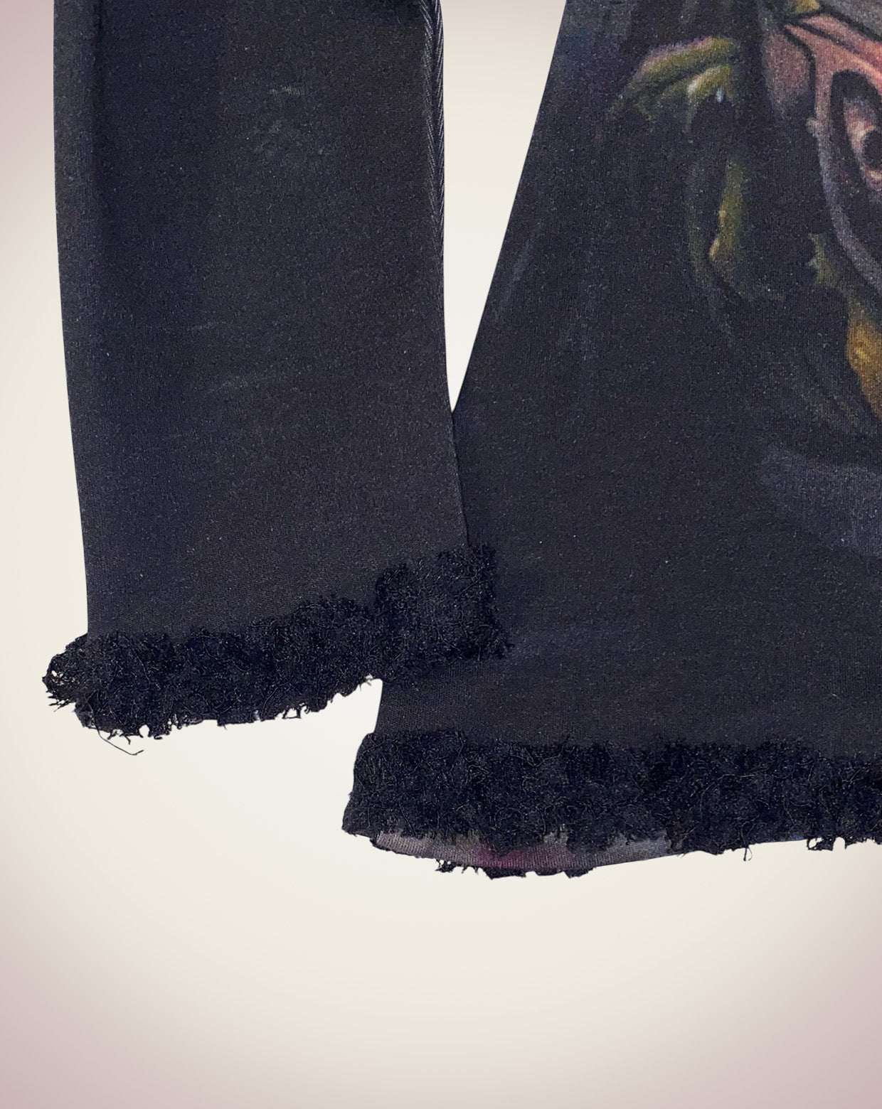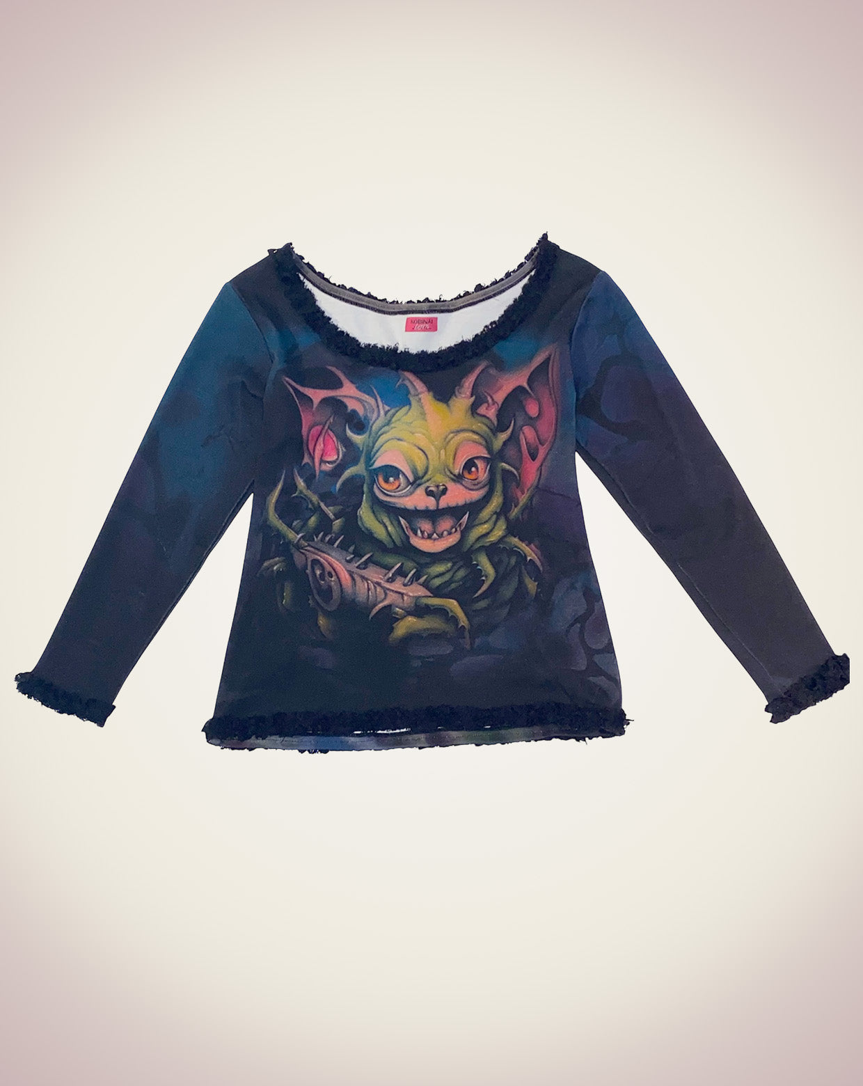 ボロボロのレースが首回り、裾、袖口にあしらわれたトップス。