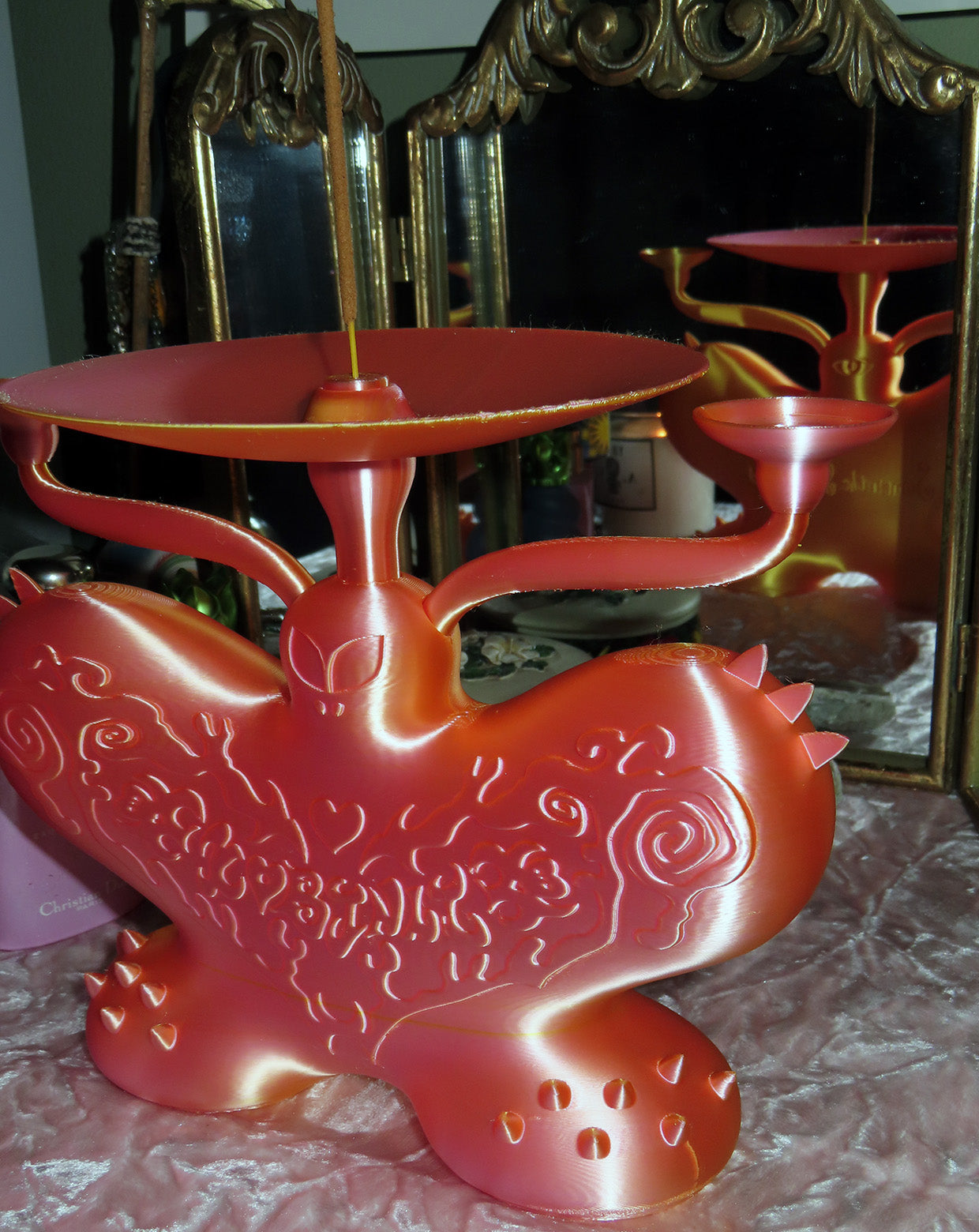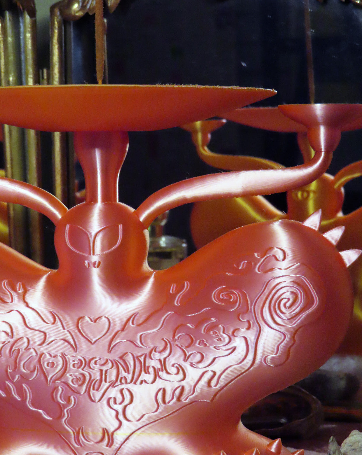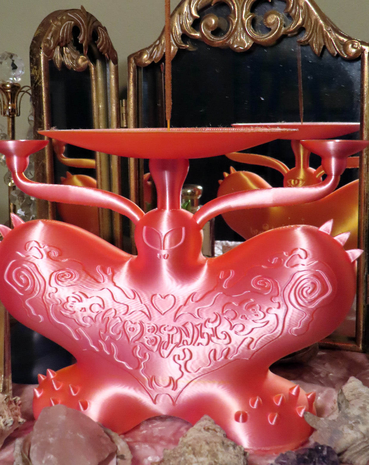 ★触覚部分のサイドの小皿には指輪や小さなアイテムを置くこともでき、中心の円盤にも小物を置くインテリアとしても使用できる。