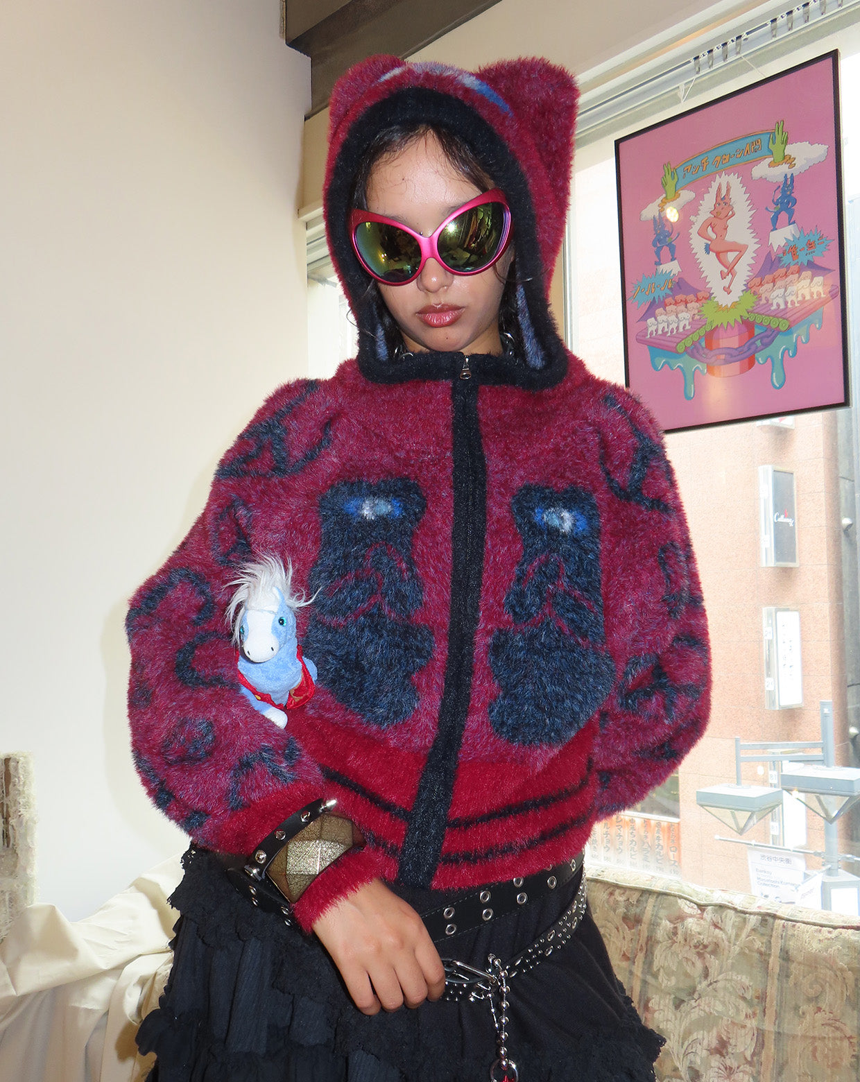 A knit hoodie that allows you to become a character that means