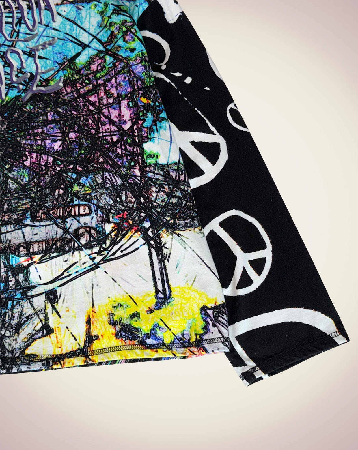 デザイナーMAIMIがヨーロッパを旅した時に感じた事を言葉とグラフィックにしたものと、旅の中街中で撮影した一部をMIXして制作したロングスリーブ。
