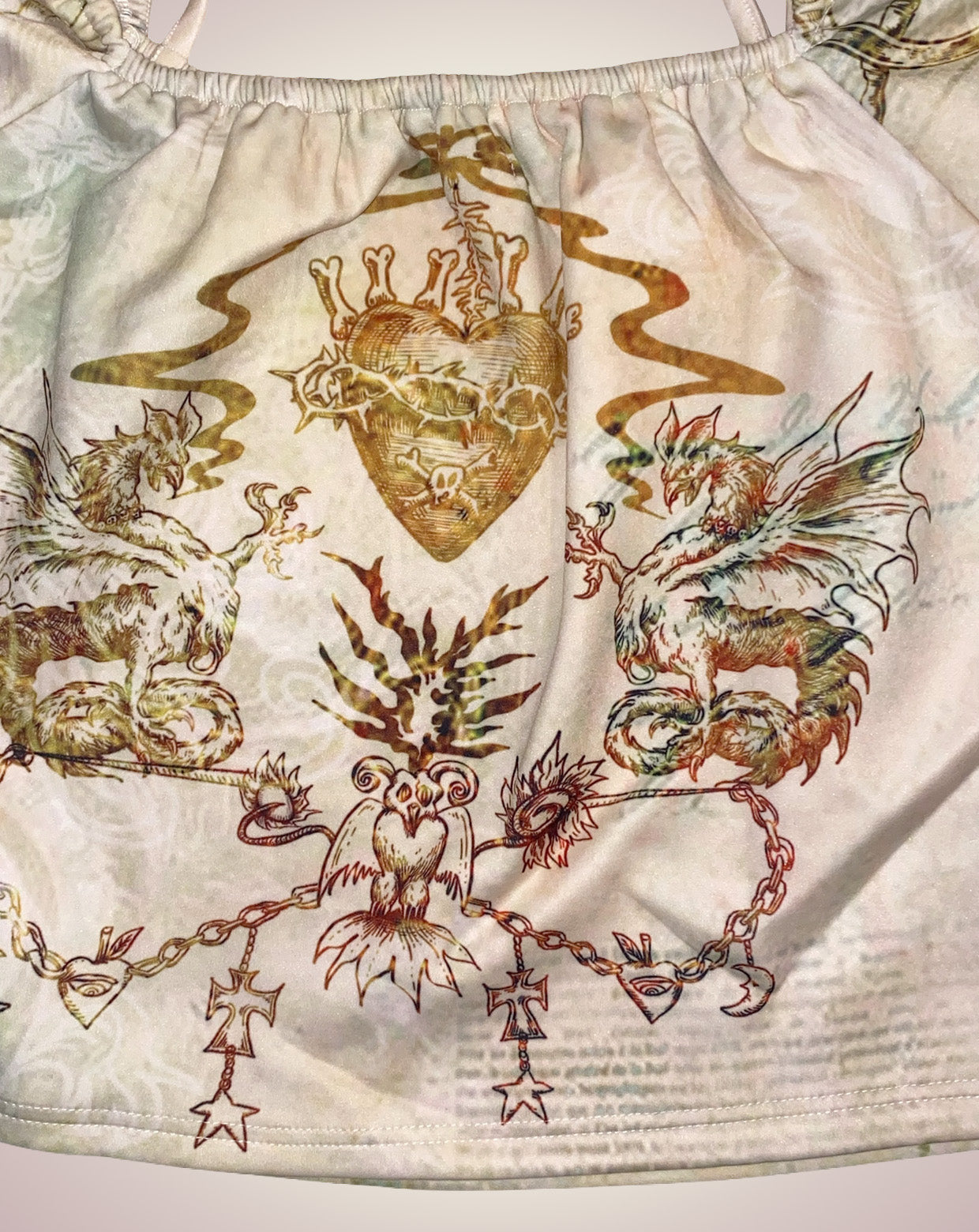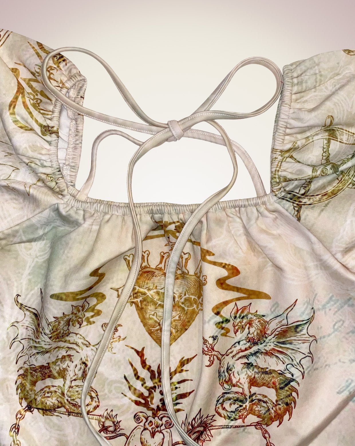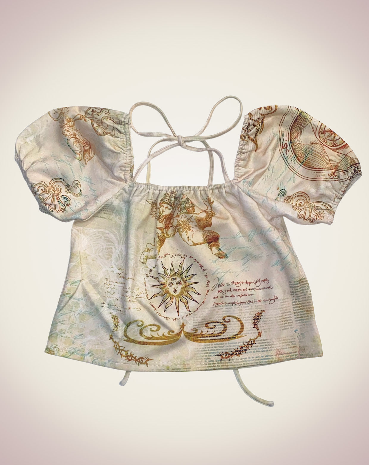 魔女達の航海日誌や航海中に出会ったもの達や物語が描かれたトップス。